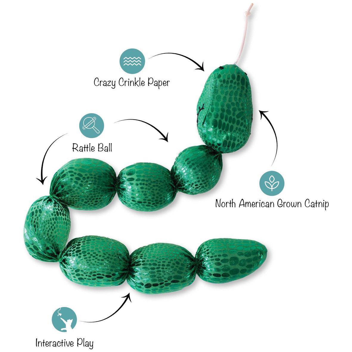 Sssssooo much fun! PetShop by Fringe Studio's "Not So Easily Rattled” kicker plush cat toy is purrfect for the playful kitty. Made with reflective plush, 2 rattle balls, crazy crinkle paper, and North American grown catnip, this toy was designed with interactive play in mind. Great for pounce, bat, chase, and play, this toy is ready to shake up your kitty's playtime.
