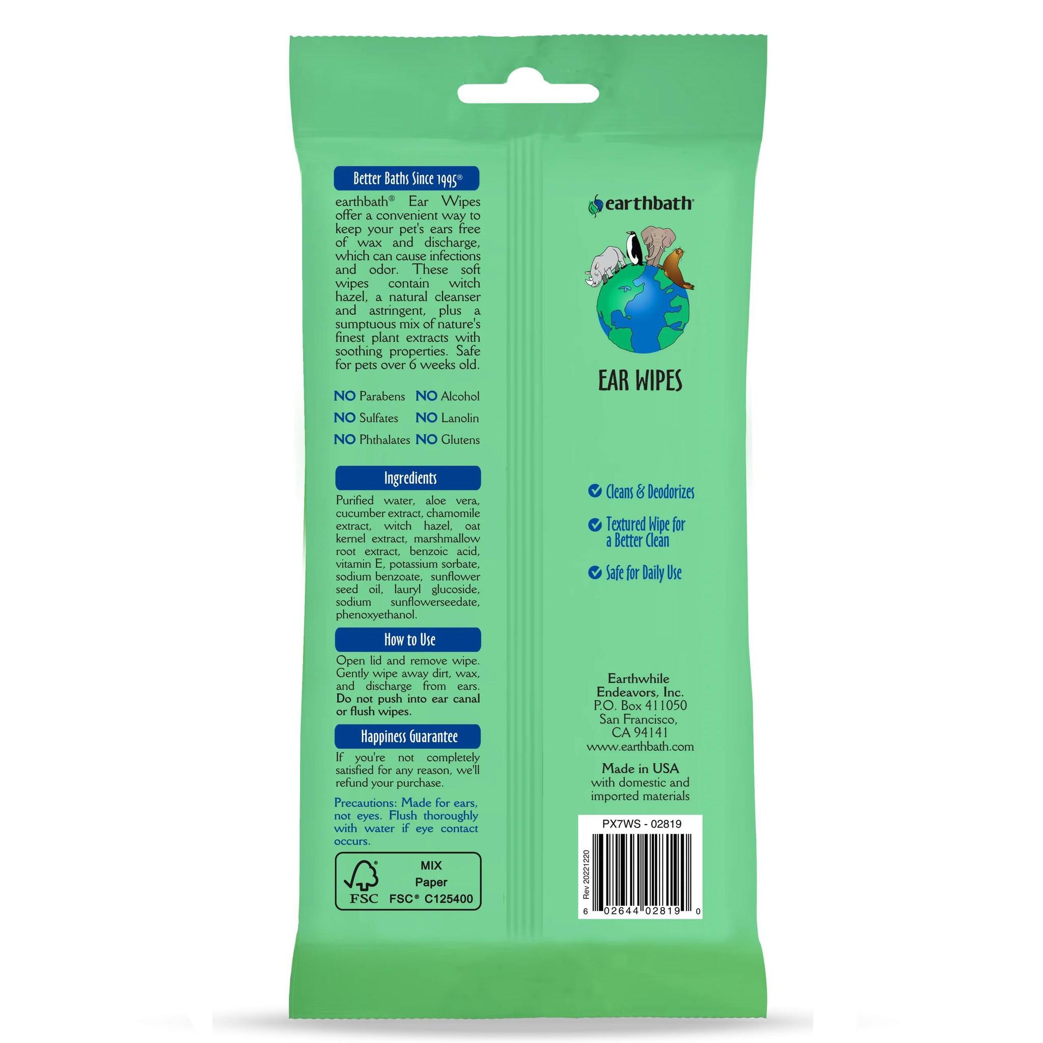 Earthbath® Ear Wipes offer a convenient way to keep your pet's ears free of wax and discharge, which can cause infections and odor. These soft wipes contain witch hazel, a natural cleanser and astringent, plus a sumptuous mix of nature's finest plant extracts with soothing properties. Safe for all pets over 6 weeks old