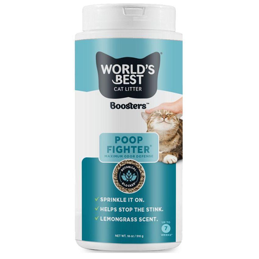Poop Fighter® Boosters™ litter additive delivers a one-two punch to odors caused from #1 or #2. Our safe, natural Botanical Blocker™ deodorizer technology is made to neutralize odors in seconds when you sprinkle it onto your litter, so no smells escape the litter box.