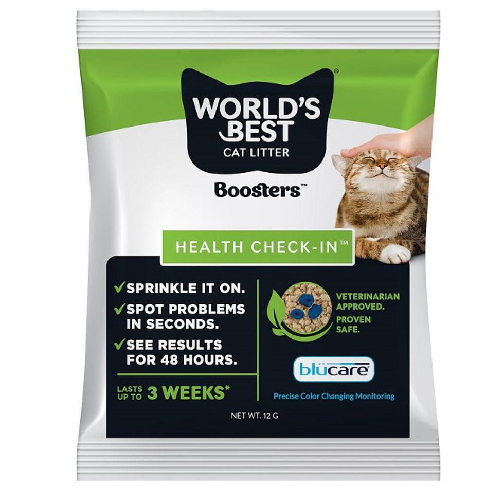Know your cat’s business the second they do theirs. Sprinkle our Health Check-In™ Boosters™ litter additive onto your litter and instantly get an indication of your cat’s health. Our easy-to-read health monitoring formula shows results for 48 hours and turns granules a distinct blue when blood is detected and stays white when your cat is healthy. Vet-approved and clinically tested, meet the safe and reliable way to monitor your feline friend’s health.