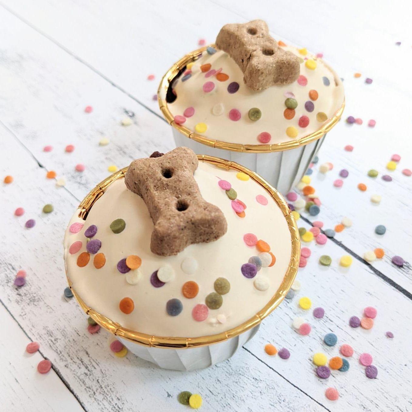 2 Banana and Peanut Butter cupcakes with yogurt hard frosting.