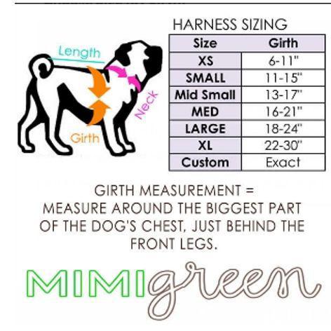 Mimi Green has the answer. We combined our funky Mimi Green style with your dog's need for comfort, safety, and easy living and we got our new Step-in Designer Dog Harnesses! Step in? That's right --all your dog has to do is step in their front legs, you pull up and snap, and you two are ready to go. Couldn't be easier OR better looking!
