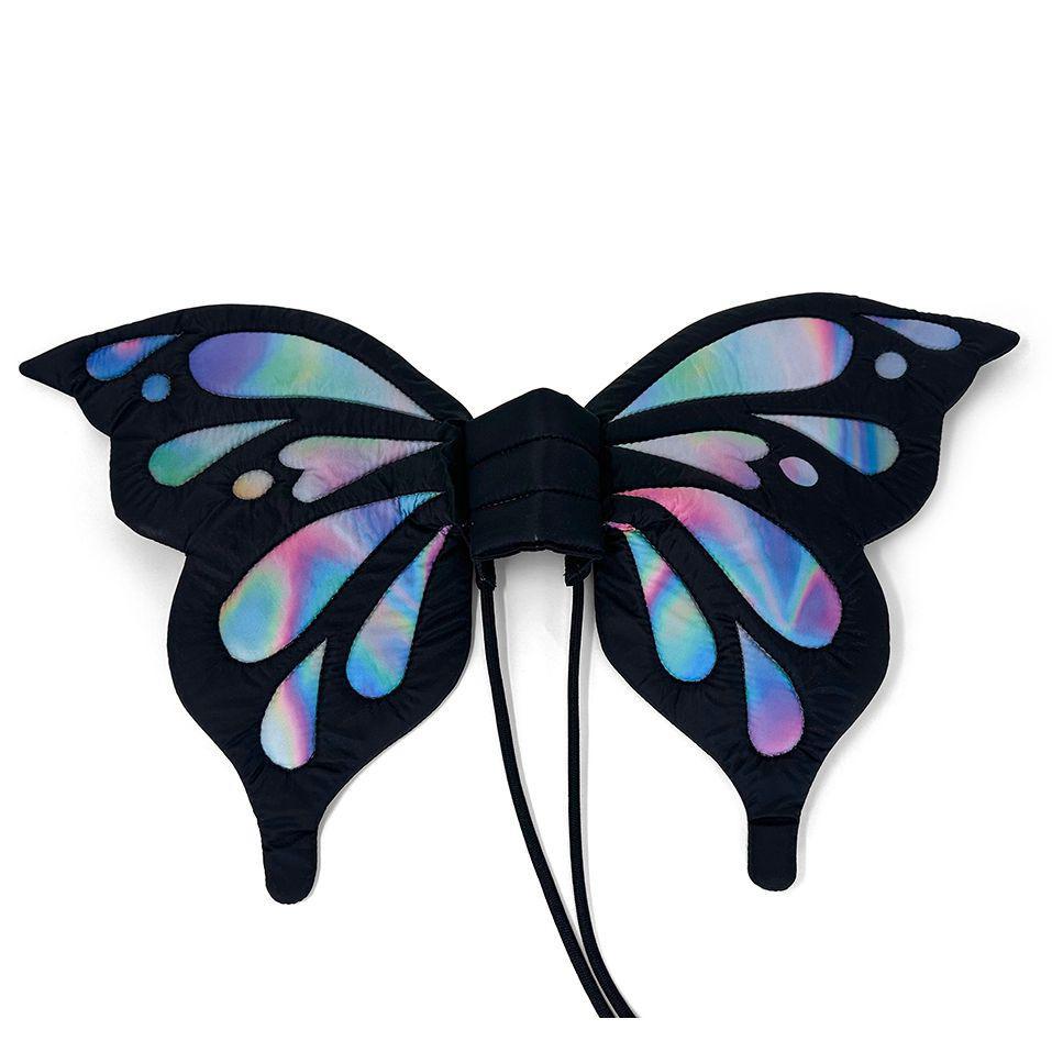 Colorful butterfly designed wings that are easy to wear, stay upright, and are great for Halloween. No metal wiring. String tie for great adjustability.